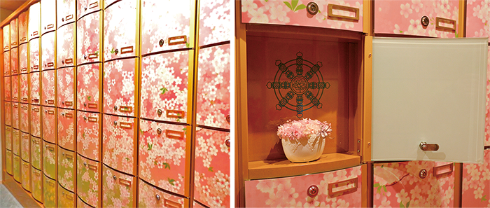 夫婦壇は河津桜からヒントを得た実相寺青山霊廟オリジナルのデザインで