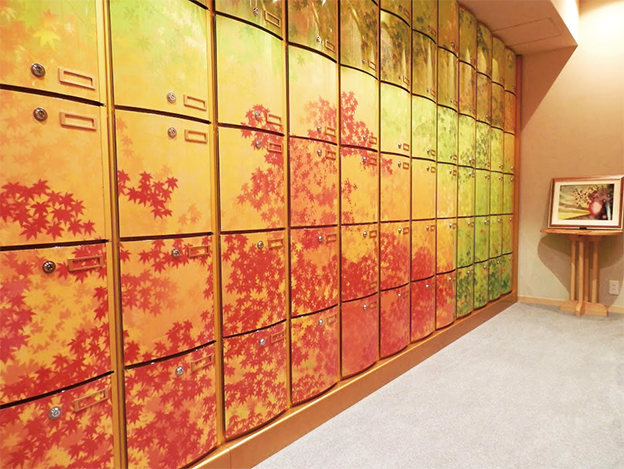 家族壇は扉のガラスを曲面に加工し、青山霊廟オリジナルの「蓮の花」と「いちょう」と「あじさい」の3種類のデザインが施されています。いちょう並木は“外苑いちょう並木”をイメージしています。あじさいは花言葉が「家族だんらん」であることに由来します。